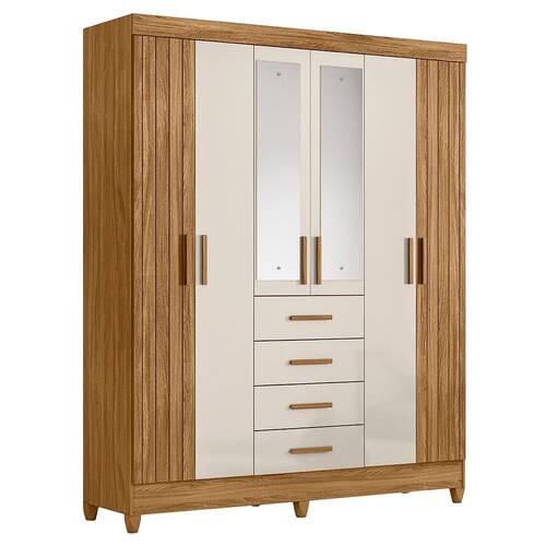 Guarda Roupa Solteiro Aruba 6 Portas e 4 Gavetas com Espelho - Moval