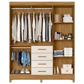 Guarda Roupa Solteiro Aruba 6 Portas Freijó Off White com Espelho - Moval