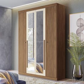 Guarda Roupa Solteiro Buriti Ripado 4 Portas com Espelho - Santos Andirá