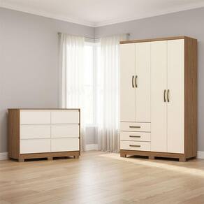 Guarda Roupa Solteiro Caju 4 Portas Ambiente e Cômoda Ravenna Nature Off White - Henn