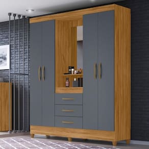 Cama, guarda roupa, ão tantos itens que não cabem no quarto de solteiro? Então, que tal otimizar espaço com o Guarda Roupa Solteiro Capelinha com Espelho 204cm Caprese M07 Freijó/Cinza, da Mpozenato? Vem conferir!