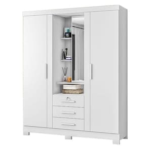 Guarda Roupa Solteiro Capelinha Premium 3 Portas Branco – Zanzini