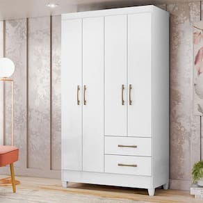 Guarda Roupa Solteiro Chile 4 Portas Branco Brilho - Moval