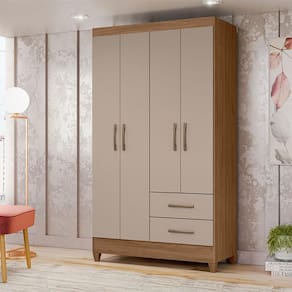 Começou a montar seu quarto? Então apresentamos para você este belo guarda roupa da linha Chile. Oferecendo quatro portas, proporciona um ótimo espaço interno para acomodar suas roupas longas. Além disso, conta com duas gavetas equipadas com corrediças metálicas, permitindo um deslizamento mais suave e seguro. Para uma maior estabilidade e durabilidade, possui pés em PVC. Fabricado pela Moval, é desenvolvido em 100% MDP de alta qualidade, sendo a escolha ideal para quem busca manter suas roupas e acessórios sempre organizados, aproveite!