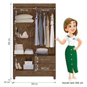 Tipo de Guarda Roupa: Solteiro | Tonalidade: Multicolorido | Quantidade de Portas: 4 | Fabricante: Moval Cor: Castanho Wood