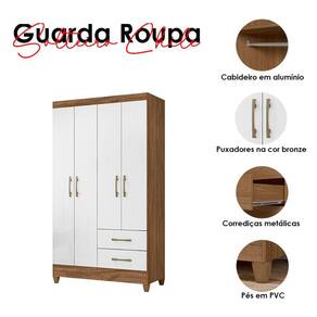Guarda Roupa Solteiro Chile 4 Portas Naturale Branco - Moval
