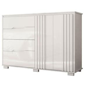 Guarda Roupa Solteiro Chile com Cômoda Texas e Armário Multiuso Jade Branco Brilho Moval