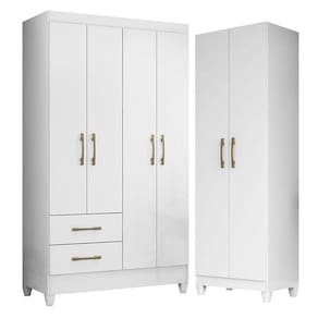 Guarda Roupa Solteiro Chile e Armário Multiuso New Iris Branco Brilho- Moval