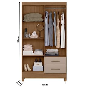 Guarda Roupa Solteiro Chile e Cômoda Vênus Carvalho Fendi Moval