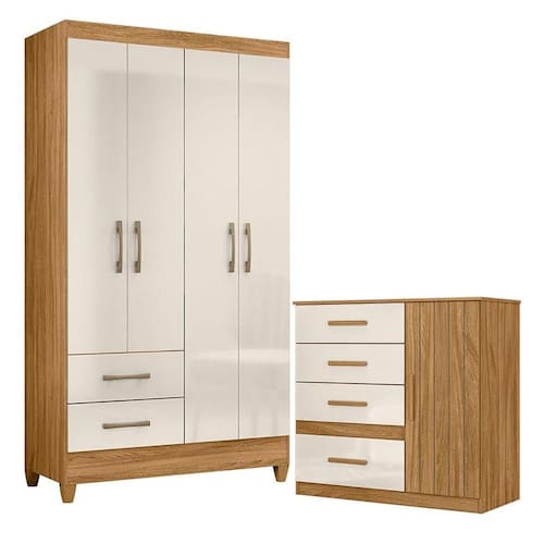 Organize seu quarto com elegância e o melhor custo benefício do mercado. Apresentamos o Guarda Roupa Solteiro Chile e Cômoda Vênus fabricados pela Moval. Guarda Roupa com 04 portas e 02 gavetas com corrediças metálicas, puxadores na cor bronze, cabideiro para melhor organização interna, espaço ideal para roupas longas  e pés em PVC. A cômoda possui 04 gavetas com corrediças metálicas, 01 porta com detalhe frisado, puxadores em MDF na cor bronze e um design moderno que combina com qualquer decoração. Fabricado com materiais de alta qualidade que garante resistência e durabilidade ao produto. Confira mais detalhes e aproveite!