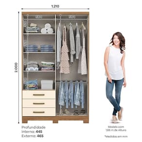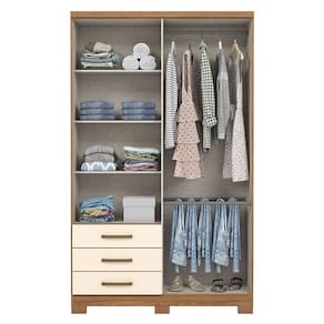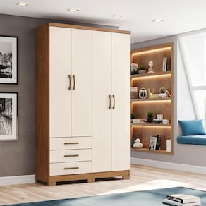 Guarda Roupa Solteiro City Ambiente 4 Portas 3 Gavetas Nature Off White - Henn