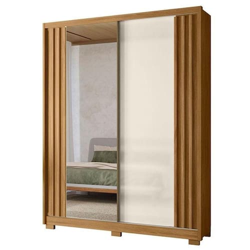 Guarda Roupa Solteiro Colorado 2 Portas Freijó Off White com Espelho - Moval