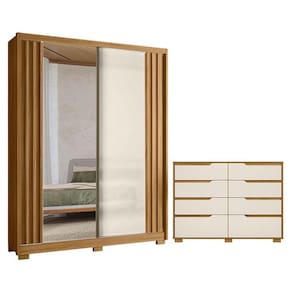 Guarda Roupa Solteiro Colorado e Cômoda Georgia Freijó Off White com Espelho - Moval