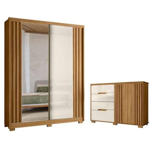 Guarda Roupa Solteiro Colorado e Cômoda Texas Freijó Off White com Espelho - Moval
