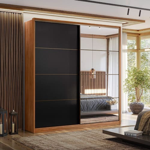 O Guarda Roupa Solteiro Belga é um modelo imponente que embeleza o ambiente e que traz grande capacidade de acomodação e organização para roupas e pertences. Várias prateleiras e maleiro espaçosos proporcionam uma interna completa aliada as gavetas com corrediças telescópicas. Puxadores com acabamento bronze e as diversas configurações de espelhos garantem a sofisticação do móvel.