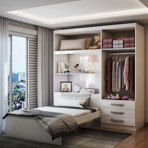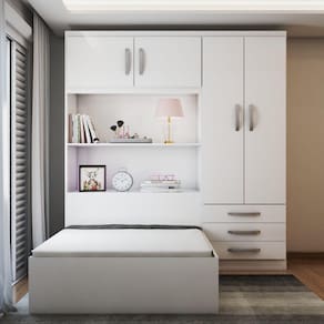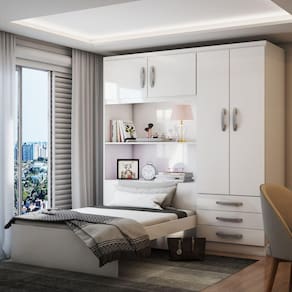 O(a) Guarda-Roupa Solteiro com Cama Liverpool 4 Portas 3 Gavetas Branco - Loja é produzido em MDP na escala de brilho Brilho e Semi-Brilho, e possui um grau de dificuldade de montagem: Médio.