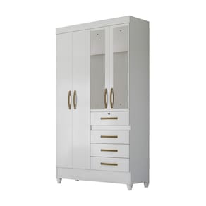 O Guarda-Roupa Sobral é a escolha perfeita para quem busca um móvel compacto, mas com boa capacidade de armazenamento. Com 4 portas e 2 espelhos, 4 gavetas, sendo a superior com chave para segurança dos pertences, 4 nichos, puxadores na cor bronze e pés em PVC, o Guarda-Roupa Sobral veio para otimizar a organização do seu ambiente. Fabricado 100% em MDP e cabideiros em alumínio, garante durabilidade e resistência. Suas corrediças metálicas proporcionam um funcionamento suave das gavetas. Com essas características, o Guarda-Roupa Sobral combina funcionalidade e estilo, tornando-se uma solução prática para qualquer quarto.