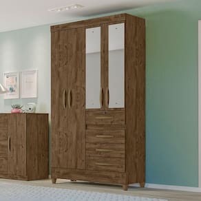 O Guarda-Roupa Sobral é a escolha perfeita para quem busca um móvel compacto, mas com boa capacidade de armazenamento. Com 4 portas e 2 espelhos, 4 gavetas, sendo a superior com chave para segurança dos pertences, 4 nichos, puxadores na cor bronze e pés em PVC, o Guarda-Roupa Sobral veio para otimizar a organização do seu ambiente. Fabricado 100% em MDP e cabideiros em alumínio, garante durabilidade e resistência. Suas corrediças metálicas proporcionam um funcionamento suave das gavetas. Com essas características, o Guarda-Roupa Sobral combina funcionalidade e estilo, tornando-se uma solução prática para qualquer quarto.