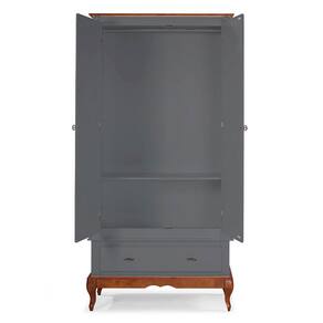 Guarda Roupa Solteiro Com Espelho 2 Portas 1 Gaveta 60406E Linz Móveis - Cinza/Imbuia