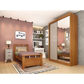 Guarda Roupa Solteiro com Espelho 2 Portas 2 Gavetas - Roma-Cinamomo - Tcil Móveis