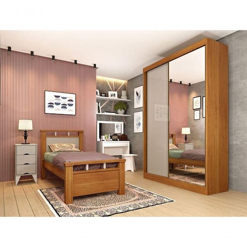 1 Guarda Roupa Solteiro com Espelho 2 Portas 2 Gavetas - Roma - Tcil Móveis