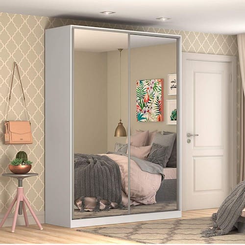 Guarda-Roupa Solteiro com Espelho 2 Portas 3 Gavetas Branco
