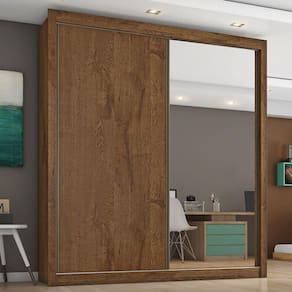 Guarda Roupa Solteiro com Espelho 2 Portas 4 Gavetas - Zurique-Braúna - Móveis Europa