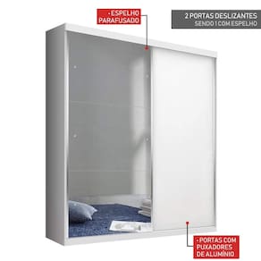 O Guarda-Roupa Salvador Plus vai manter o seu quarto arrumado e com uma decoração moderna! Confeccionado com matérias de qualidade, ele possui 2 portas de correr e 2 gavetas com corrediças metálicas, garantindo assim a resistência ao abrir e fechar. Suas prateleiras são espaçosas e vão deixar as suas roupas sempre à mão. Demais não é? Leva! Acabamento da Prateleira: Pintura Escala de Brilho da Prateleira: Brilhante Possui Cabideiros: 03 Acabamento da Gaveta: Pintura Escala de Brilho da Gaveta: Brilhante Acabamento da Porta: Pintura Escala de Brilho da Porta: Brilhante Material do Puxador da Porta: Alumínio : 218 cm : 218 cm Ambiente: Quarto Cr: Branco Cr: Branco Cr Predominante: Branco Escala de Brilho: Brilhante Espessura do Espelho: 3 mm Estilo: Moderno Formato do Espelho: Retangular Itens Inclusos: 1 Guarda Roupa e Manual de Montagem. : 138 cm : 138 cm Linha ou Coleção: Salvador Plus Material da Gaveta: MDP Material da Porta: MDP Material da Prateleira: MDP Material Principal: MDP Necessita Montagem: Sim Peso: 112 kg Possui Calceiros: Não Possui Espelho: Sim Possui Gavetas: 02 Possui Pés: Não Possui Portas: 02 Possui Prateleiras: 02 : 53,5 cm : 53,5 cm Recomendações de Uso, Manutenção e Limpeza: Limpar com flanela limpa e seca. Não usar produtos abrasivos. Sapatas Niveladoras: Não Sistema de Montagem: Parafuso e minifix Suporta até (kg): 70 kg Tamanho do Espelho (A x L): 67cm x 66,5cm Tipo de Dobradiça/Corrediça da Porta: Alumínio Tipo de Gaveta: Interna : Correr Tipo de Puxador da Gaveta: Embutido Tipo de Puxador da Porta: Externo