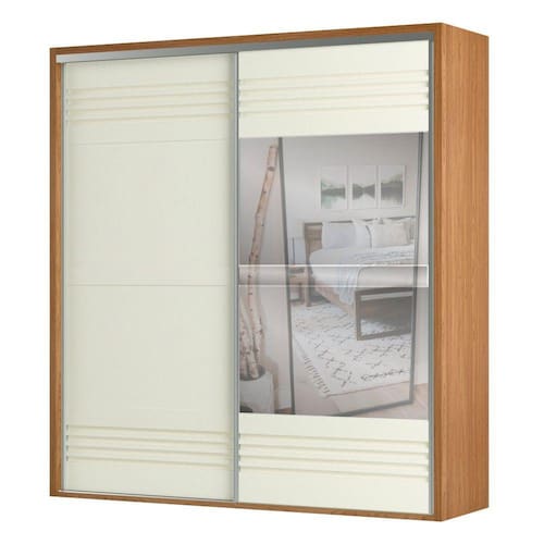 Características: Material MDF Acabamento pintura UV 2 Portas de correr 2 Gavetas Corrediças telescópicas Cabideiro em alumínio