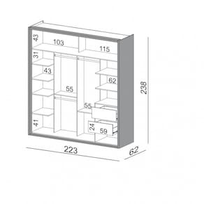Dimensões: Altura: 238 cm Largura: 223 cm Profundidade: 62 cm Peso: 233,9 kg