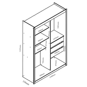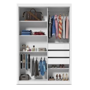 Caracteristicas: Material em MDF 2 Portas de Correr 3 Gavetas 4 Prateleiras 1 Espelho 2 Cabideiro em aluminio Corredicas telescopicas Puxador em aluminio Acabamento pintura U.V Gavetas suporta ate 5kg Prateleiras suporta ate 10kg