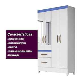 Guarda Roupa Solteiro com Espelho 4 portas 2 gavetas Branco Flex Madri - Moval