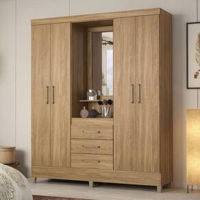 O Guarda Roupa Solteiro com Espelho 4 Portas 3 Gavetas Capelinha e Pes Persia Demobile e a escolha ideal para quem busca organizacao, design moderno e melhor aproveitamento do espaco no quarto. Com 4 portas, 3 gavetas e espelho, ele oferece excelente espaco interno para acomodar roupas, calcados e acessorios. Possui cabideiros metalicos resistentes, prateleiras amplas e pes que facilitam a limpeza, alem de acabamento em pintura UV/Touch, que valoriza o visual do movel. Um guarda-roupa solteiro funcional, elegante e resistente, perfeito para quem deseja mais organizacao e beleza no ambiente.