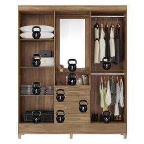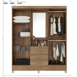 Caracteristicas: 2 Cabideiros metalicos 3 Gavetas com corredicas metalicas 4 Portas com dobradicas metalicas 5 Prateleiras Acabamento em pintura UV/Touch Espaco para calcados Estrutura em MDP 12/15mm Gavetas suportam 3kg Pes em PVC Prateleiras suportam 4kg Puxadores em ABS