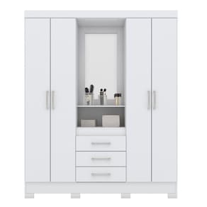 Guarda Roupa Solteiro com Espelho 4 Portas 3 Gavetas Nápole Briz Branco/Branco/Rosa Chá
