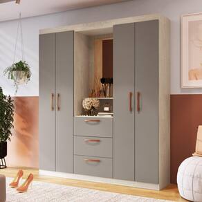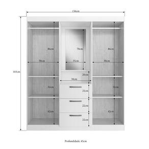 Guarda Roupas Panamá 59000, é um roupeiro com 4 portas de bater e 3 gavetas produto com puxadores plásticos ABS, dobradiças e corrediças metálicas. Produto com boa distribuição de cabides e prateleiras.