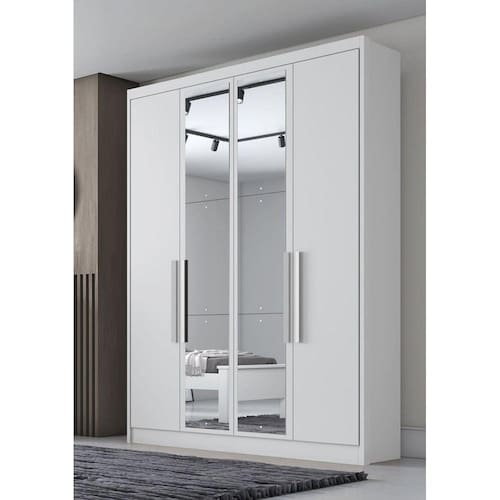 Guarda Roupa Solteiro com Espelho 4 Portas 3 Gavetas - Sevilha-Branco - Móveis Novo Horizonte