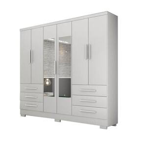 Guarda Roupa Solteiro com Espelho 6 Portas 6 Gavetas - Berlim-Branco - Móveis Novo Horizonte