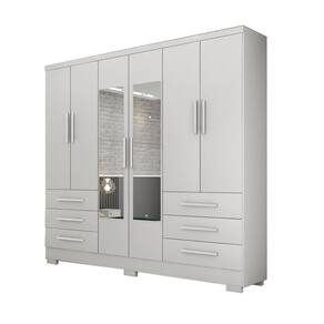 Guarda Roupa Solteiro com Espelho 6 Portas 6 Gavetas - Berlim-Branco - Móveis Novo Horizonte