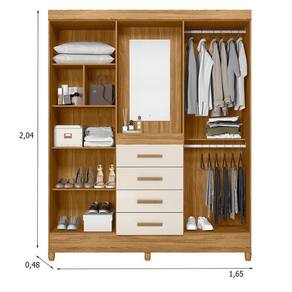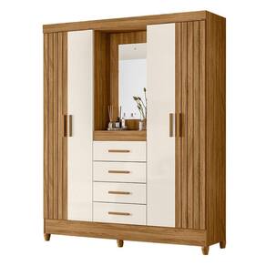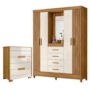 Guarda Roupa Solteiro com Espelho Atenas e Cômoda Dhara Freijó Off White – Moval
