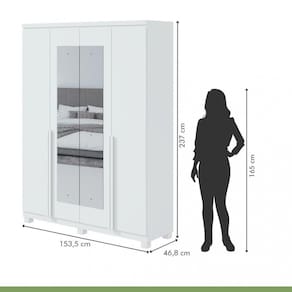 Características: 4 Portas Material do Puxador da Porta - MDF Tipo de Dobradiça - Metálica Tipo de Puxador da Porta - Externo 02 Gavetas Tipo de Gaveta - Interna Peso Máximo por Gaveta - 5 kg Tipo de Puxador da Gaveta - Embutido Tipo de Corrediça da Gaveta - Metálica Telescópica 5 Prateleiras Peso Máximo por Prateleira - 12 kg 1 Calceiro 1 Cabideiro 6 Pés Material Principal - MDF Escala de Brilho - Fosco Sistema de Montagem - Parafusos E Minifix