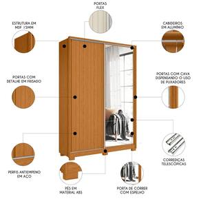 O Guarda Roupa Solteiro com Espelho Rizatto Flex A02 Off/Cinamomo, da Mpozenato foi projetado para oferecer uma combinação perfeita de estilo e funcionalidade, ideal para quem busca organização e sofisticação.