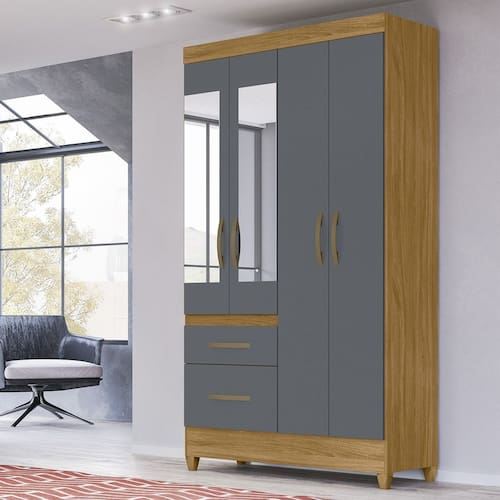 O Guarda-Roupa Madri é a escolha perfeita para quem busca elegância, funcionalidade e organização no quarto. Com suas 4 portas de giro, o Guarda-Roupa Madri oferece um amplo espaço interno para armazenar suas roupas, acessórios e objetos pessoais de forma organizada. As 2 gavetas adicionais oferecem espaço adicional para itens menores e de fácil acesso. Os pés em PVC garantem estabilidade e durabilidade ao móvel, assegurando sua resistência ao longo do tempo. Você também tem a opção de adicionar um espelho ao seu Guarda-Roupa Madri, criando um ambiente mais iluminado e ampliando a sensação de espaço em seu quarto. Com o cabideiro incluso, você terá um espaço dedicado para pendurar suas roupas, mantendo-as organizadas. Acabamento da Prateleira: Pintura Escala de Brilho da Prateleira: Semi-Fosco Possui Cabideiros: Sim Acabamento da Gaveta: Pintura Escala de Brilho da Gaveta: Fosco Possui Organizador de Gaveta: Não Acabamento da Porta: Pintura UV Escala de Brilho da Porta: Semi-Fosco Material do Puxador da Porta: Plástico Ambiente Principal: Quarto codigo_ean: 7909903707692 Complexidade da Montagem: Alta: deve ser montado por um montador especializado Cor: Freijó/Cinza Cor do Produto: Freijó/Cinza Cor Interna: Freijó Escala de Brilho: Semi-Fosco Espessura da Estrutura (mm): 12 mm Espessura das Portas (mm): 5 mm Espessura das Prateleiras (mm): 5 mm Espessura do Fundo (mm): 6 mm Espessura do Fundo das Gavetas (mm): 5 mm Gaveta com Chave: Não Itens Inclusos: 1 Guarda-Roupa, Kit Ferragens e Manual de Montagem Linha ou Coleção: Madri Manual de Montagem e Instalação: https://product-hub-prd.madeiramadeira.com.br/904987/documents/0edf51c0-7e97-4a64-b6ba-55ec4c11807d1982298333317165712411926.pdf Marca: Moval Material da Gaveta: MDP Material da Porta: MDP Material da Prateleira: MDP Material Principal: MDP modular: Não Necessita Montagem: Sim Origem do Produto: Nacional Peso: 67,96 kg Peso Máximo por Gaveta: 2,5 kg Peso Máximo por Prateleira: 6 kg Possui Calceiros: Não Possui Espelho: Não Possui Pés: Não Possui Portas: Sim Possui Prateleiras: Sim Produto Montado: Sim Recomendações de Uso, Manutenção e Limpeza: Para Limpeza de seu Móvel: Use uma Flanela seca ou umedecida/ Não use produto Químico que pode danificar seu móvel. Sistema de Montagem: Parafusos, Cavilhas, Minifix Tipo de Corrediça da Gaveta: Metálica Simples Tipo de Dobradiça/Corrediça da Porta: Metálica Tipo de Gaveta: Externa Tipo de Guarda-Roupa: Solteiro Tipo de Puxador da Gaveta: Não Possui Tipo de Puxador da Porta: Externo