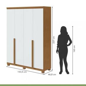 Características: 4 Portas Material do Puxador da Porta - MDF Tipo de Dobradiça - Metálica Tipo de Puxador da Porta - Externo 02 Gavetas Tipo de Gaveta - Interna Peso Máximo por Gaveta - 5 kg Tipo de Puxador da Gaveta - Embutido Tipo de Corrediça da Gaveta - Metálica Telescópica 5 Prateleiras Peso Máximo por Prateleira - 12 kg 1 Calceiro 1 Cabideiro 6 Pés Material Principal - MDF Escala de Brilho - Fosco Sistema de Montagem - Parafusos E Minifix