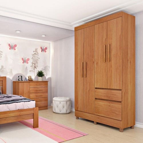 O Guarda Roupa Oregon veio para agradar todos os gostos. Procurando elegância, modernidade e sofisticação para seu quarto? Este é o produto que irá te oferecer essas qualidades. Produto fabricado em MDP com 4 portas de bater, possui um excelente espaço interno bem distribuído, oferecendo máxima organização de forma prática. Suas gavetas possuem corrediças metálicas que traz uma maior sofisticação para o guarda-roupa e também proporciona um mecanismo silencioso para abrir e fechar as gavetas, parte interna é na cor do produto, escolha a melhor cor que combine com você e seu quarto. Garanta já o seu!