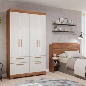 O Guarda Roupa Solteiro com Pés 4 Portas 4 Gavetas 100MDF Porto Panan, ideal para quem busca funcionalidade e qualidade. Com design moderno, possui 3 prateleiras internas, 2 gavetas convencionais e 2 gavetões equipados com corrediças telescópicas para um deslize suave e seguro. Conta também com um espelho interno, cabideiro em alumínio, e puxadores em MDF que agregam durabilidade e estilo. Além disso, seus pés proporcionam maior estabilidade e facilitam a limpeza do ambiente.