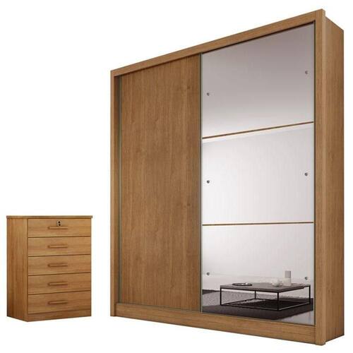 MDF / MDPGuarda Roupa Solteiro Dante com Espelho e Gaveteiro Suiça Cumaru 23 - Horizonte