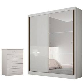 MDF/MDPGuarda Roupa Solteiro Dante com Espelho e Gaveteiro Suiça Neve - Horizonte