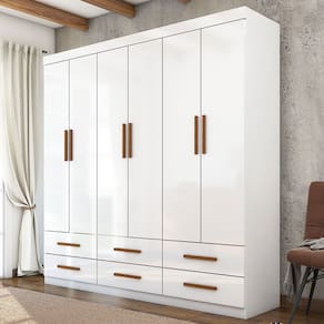 O(a) Guarda-Roupa Solteiro Denver 6 Portas 6 Gavetas Branco - Carioca Móveis é produzido em MDP na escala de brilho Fosco e Semi-Brilho, e possui um grau de dificuldade de montagem: Médio.