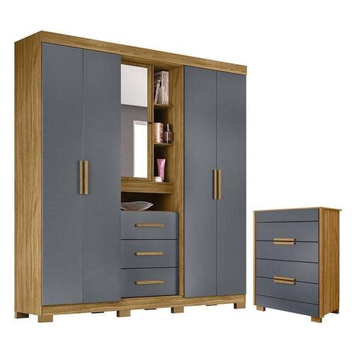 100% MDPGuarda Roupa Solteiro Eldorado e Cômoda Dhara Freijó Cinza - Moval